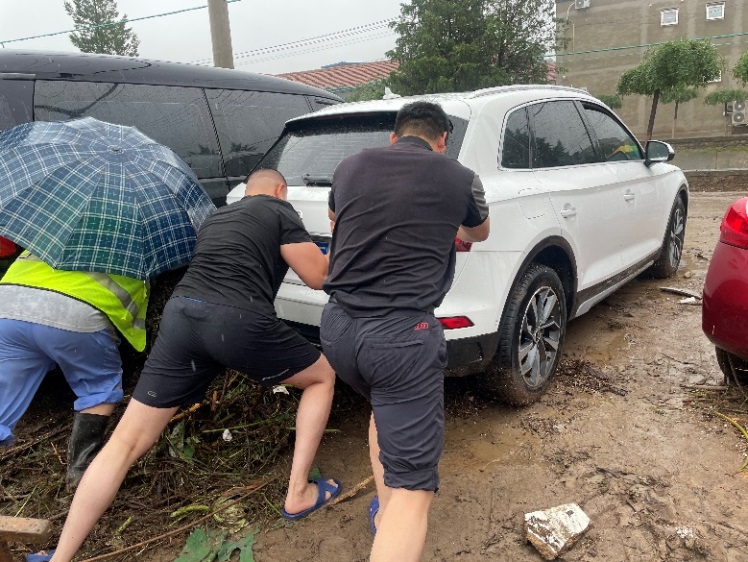 8月1日,院内积水迅速退下,公司干部职工迅速投入到抢险救援的工作中。售后服务部成立的救援小组,开通车辆救援绿色通道,且全部免费救援,24小时人员电话值守,第一时间赶赴现场,截止到8月4日已接入涉水车60余台,主动救援40余次。同时与各大车险公司协商高效定损直赔方案,开通快速核保流程,最大化安抚和保障客户能够及时理赔定损。