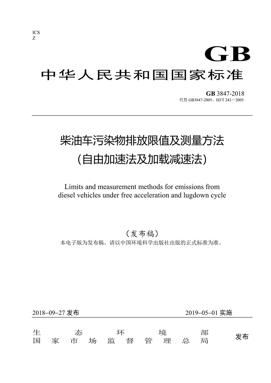 柴油车污染物排放限值及测量方法 (自由加速法及加载减速法)