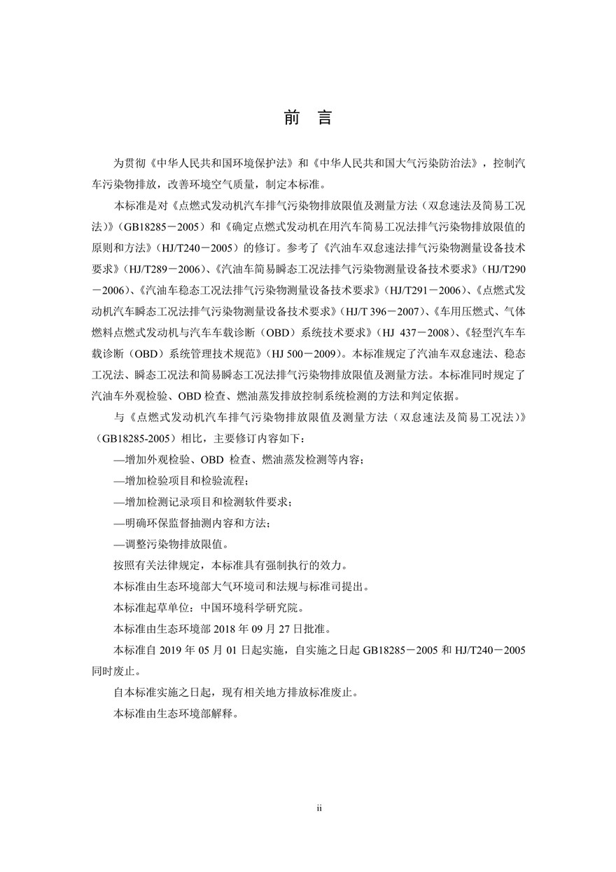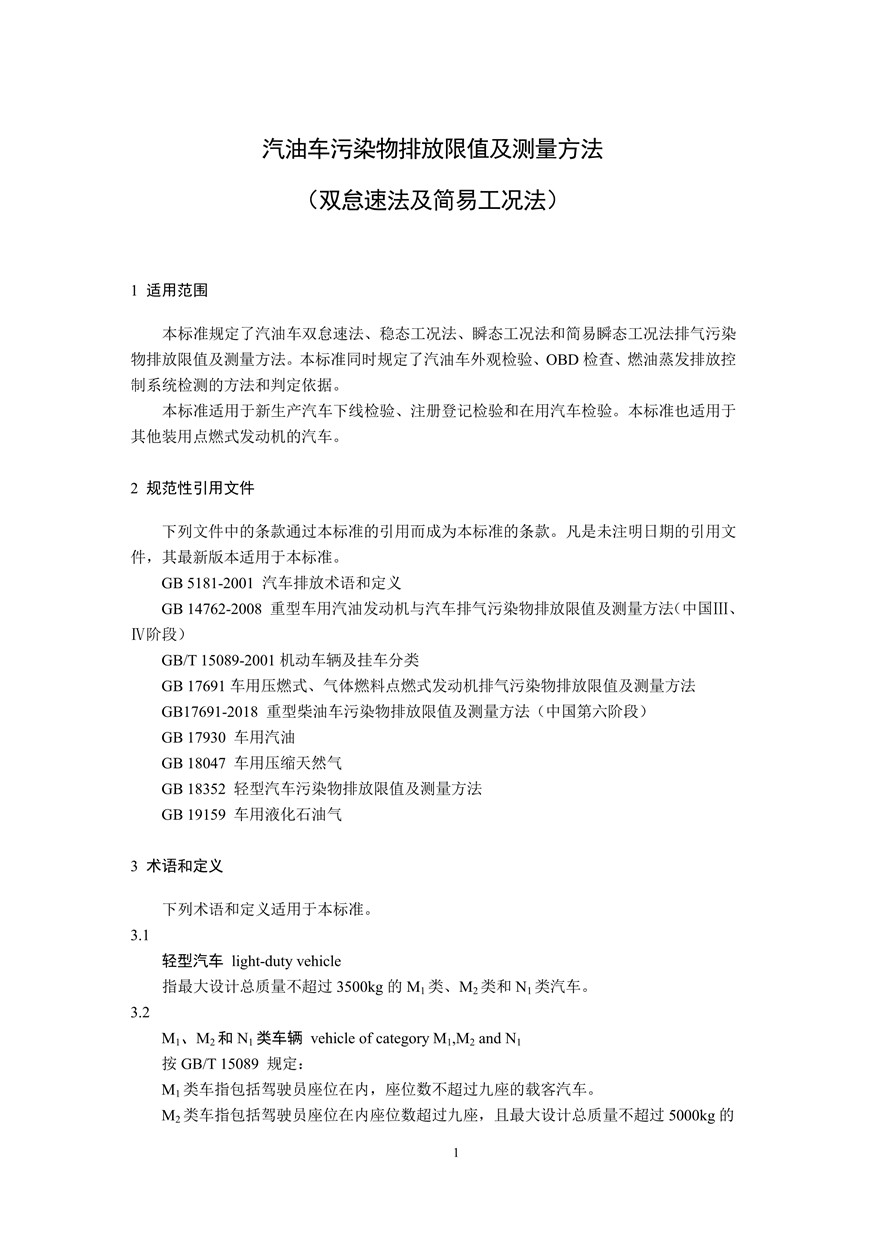 汽车污染物排放限值及测量方法(双怠速法及简易工况法)